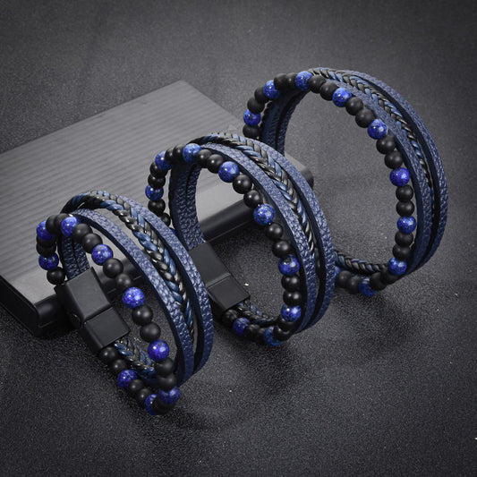 Leather woven tiger's Eye obsidian bracelet